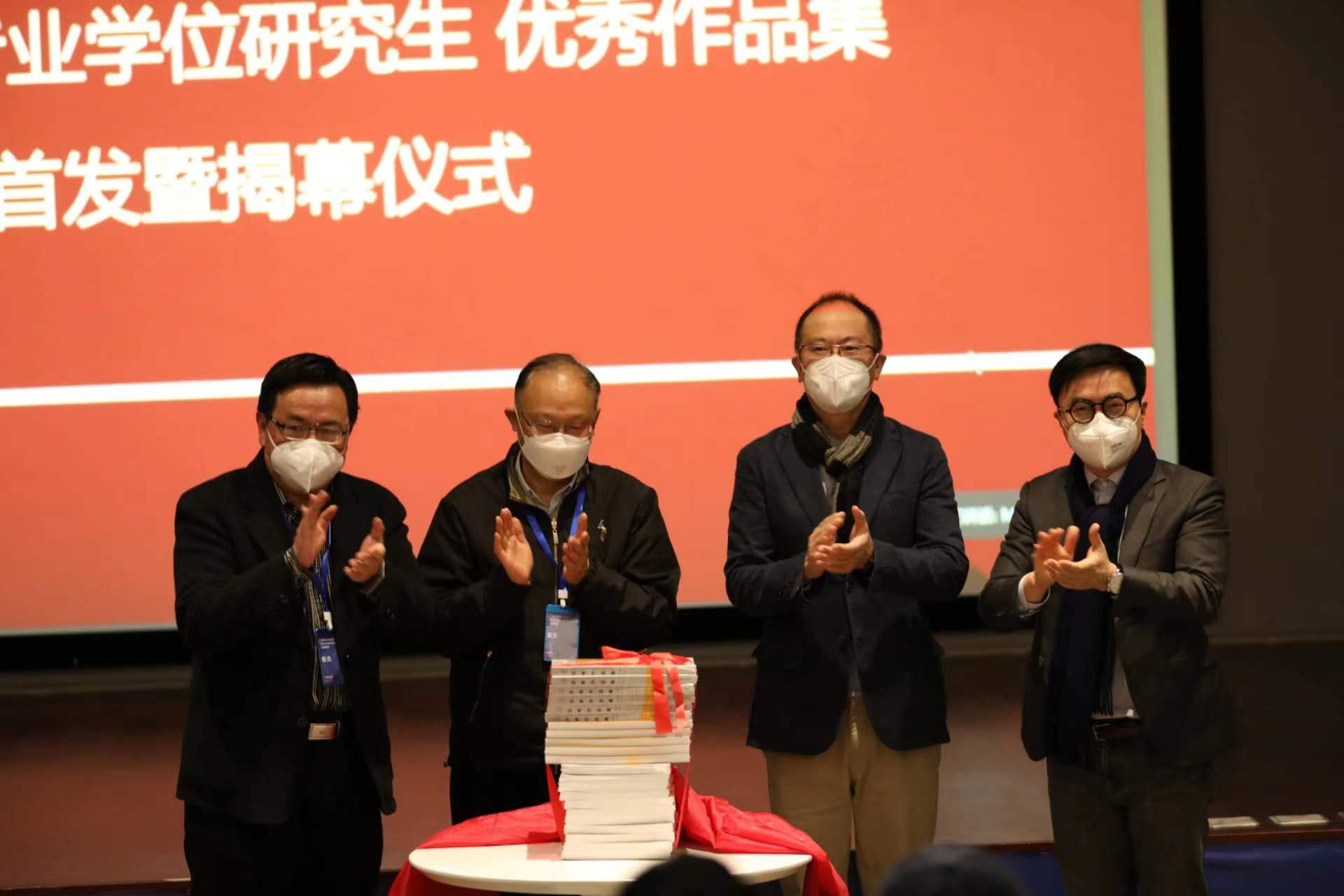 上海艺指委秘书长冯信群宣读2022年上海艺指委学位作品获奖名单,并举行《上海艺术专业学位研究生优秀作品集》首发仪式,由上海应用技术大学副校长毛祥东、上海市教育委员会高等教育处处长束金龙、上海艺指委主任委员刘晓刚及副主任委员、同济大学副校长娄永琪共同为新作品集揭幕。另外,在上海艺指委和上海应用技术大学共同努力下,本次作品通过出书和展板的两种形式共同展示,以供参会各委员细致观摩和指导。