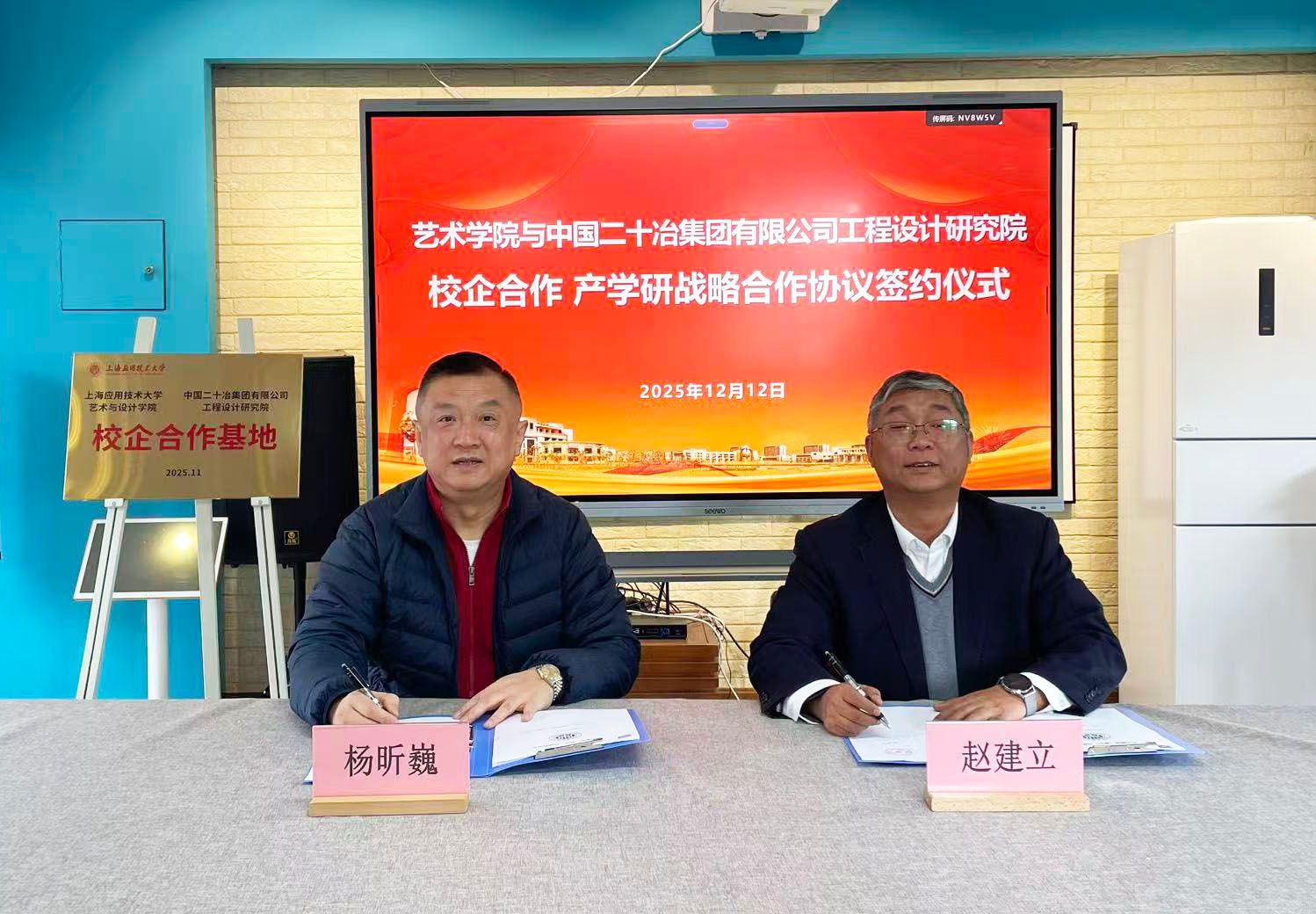 2025年12月12日,艺术与设计学院与中国二十冶集团有限公司工程设计研究院签署校企合作及产学研战略合作协议。中国二十冶集团有限公司工程设计研究院院长赵建立,综合办公室主任王卓;艺术与设计学院院长杨昕巍、党委书记胡艺及教师代表出席活动。