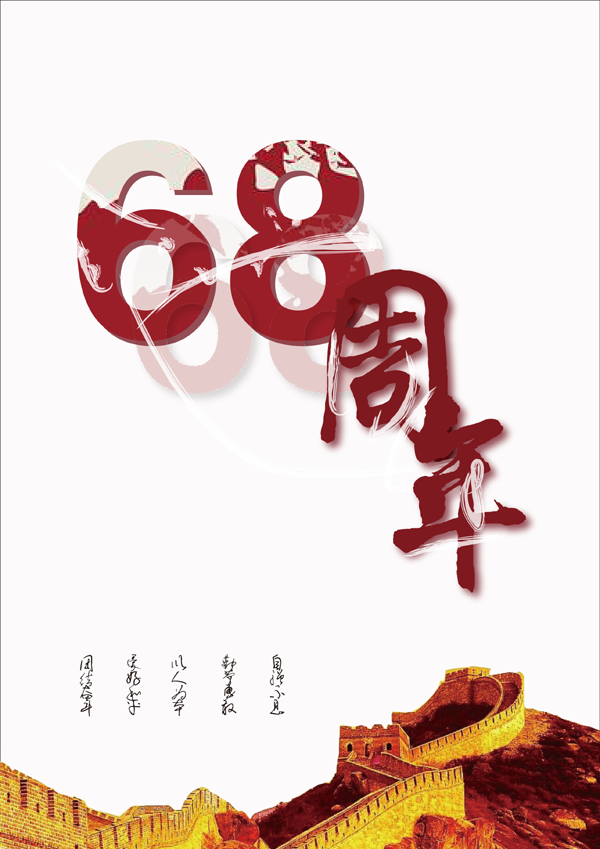 王爽爽同学的海报以祖国母亲68岁的生日庆典为主题。海报向我们渲染了一幅祖国华诞,普天同庆的美好场景;党的光辉历程,举世瞩目。68年艰辛坎坷,68年艰苦奋斗,68年风雨与共,共同迎来了祖国母亲伟大生辰。