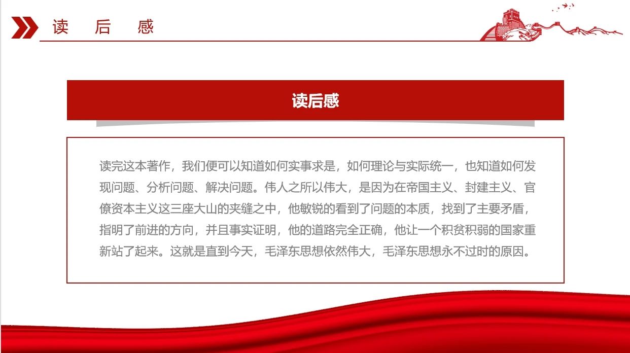第三位石磊同学分享的是《毛泽东选集》。作者是毛泽东,他是中国人民的领袖、伟大的马克思主义者,是伟大的无产阶级革命家、战略家、中国共产党、中国人民解放军和中华人民共和国的主要缔造者和领导人、理论家,是马克思主义中国化的伟大开拓者,是党的第一代中央领导集体的核心,是领导中国人民彻底改变自己命运和国家面貌的一代伟人。