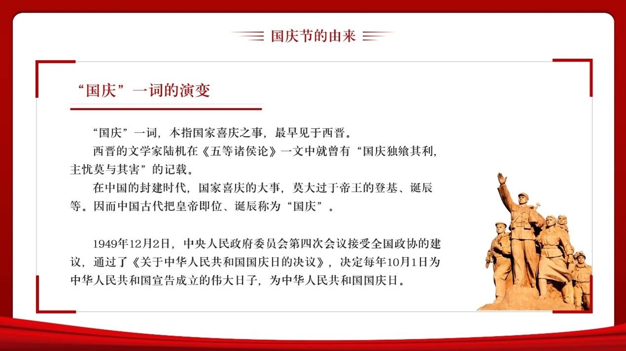 首先,站长团王思芸同学先介绍了国庆节的由来和意义。1949年10月1日,决定每年10月1日为中华人民共和国国庆日。中华人民共和国国庆节是国家的一种象征,它是一个独立国家的标志,反映中国的国体和政体。它还是一种新的、全民性的节日形式,承载了反映中国民族的凝聚力的功能。除此之外,还具有显示国家力量、增强国民信心、体现凝聚力、发挥号召力这四个基本特征。