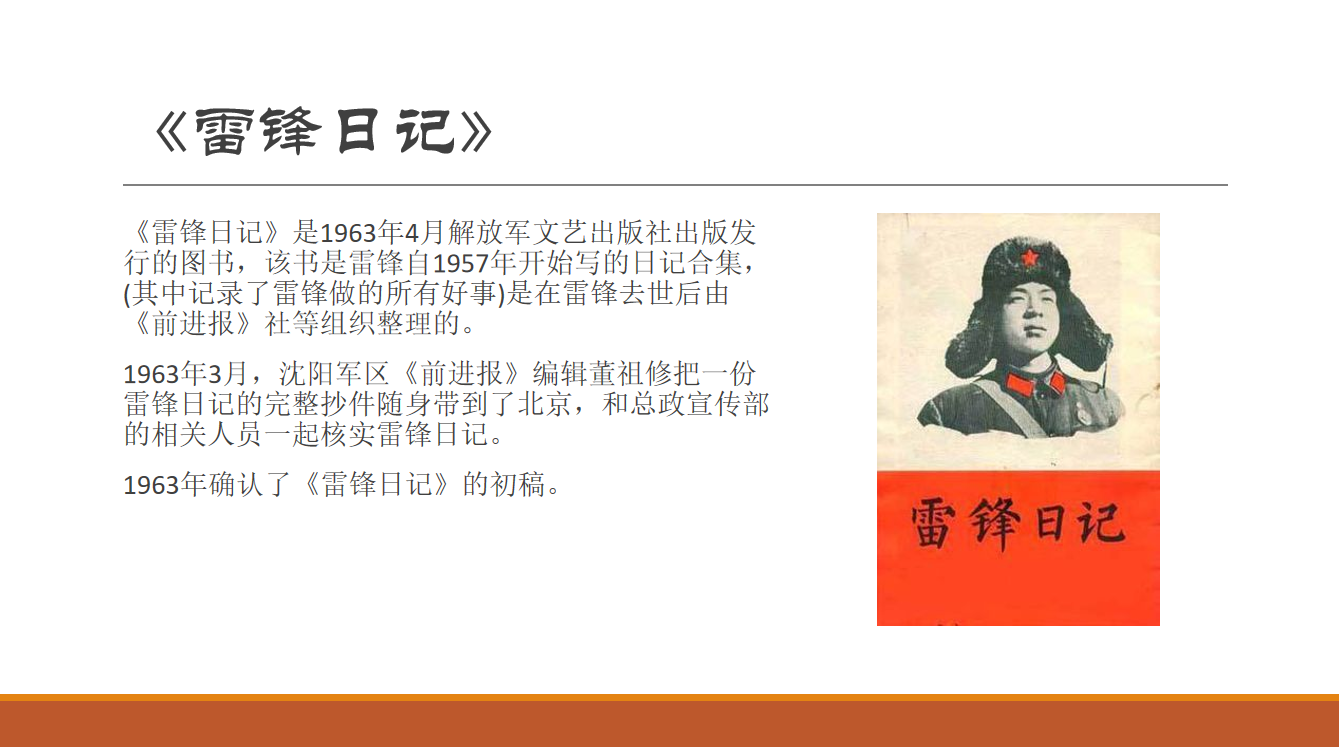 首先,我们简单了解了一下雷锋。雷锋,原名雷正兴,出生于湖南长沙,中国人民解放军战士,共产主义战士。1954年加入中国少年先锋队,1960年参加中国人民解放军,同年11月加入中国共产党。1962年8月15日,雷锋因公殉职,年仅22岁。由此,大家对于雷锋有了一个更深入的了解。