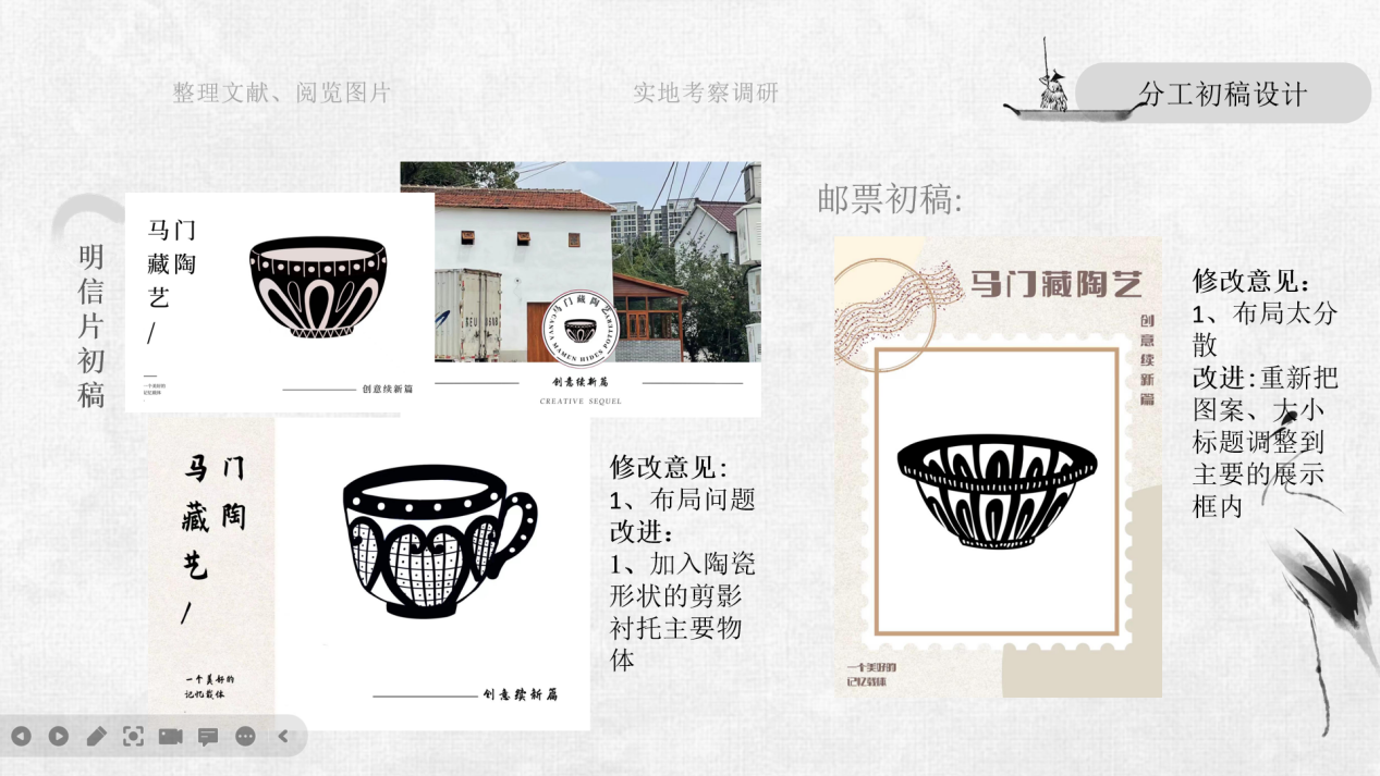 “马门藏陶艺——创意续新篇”团队的实践方向颇有新意:乡村振兴,艺术设计可以先行,该团队通过打造陶艺为主的手工艺村艺术家工作室,带动陶艺艺术周边产业,要用真正的艺术镶嵌,来驱动乡村旅游和乡村振兴,作为大学生,我们会制作许多有关陶艺艺术周边的产品,把上海马门陶艺村打造成一个以陶艺艺术为主的乡村文化艺术村、陶艺艺术旅游胜地。