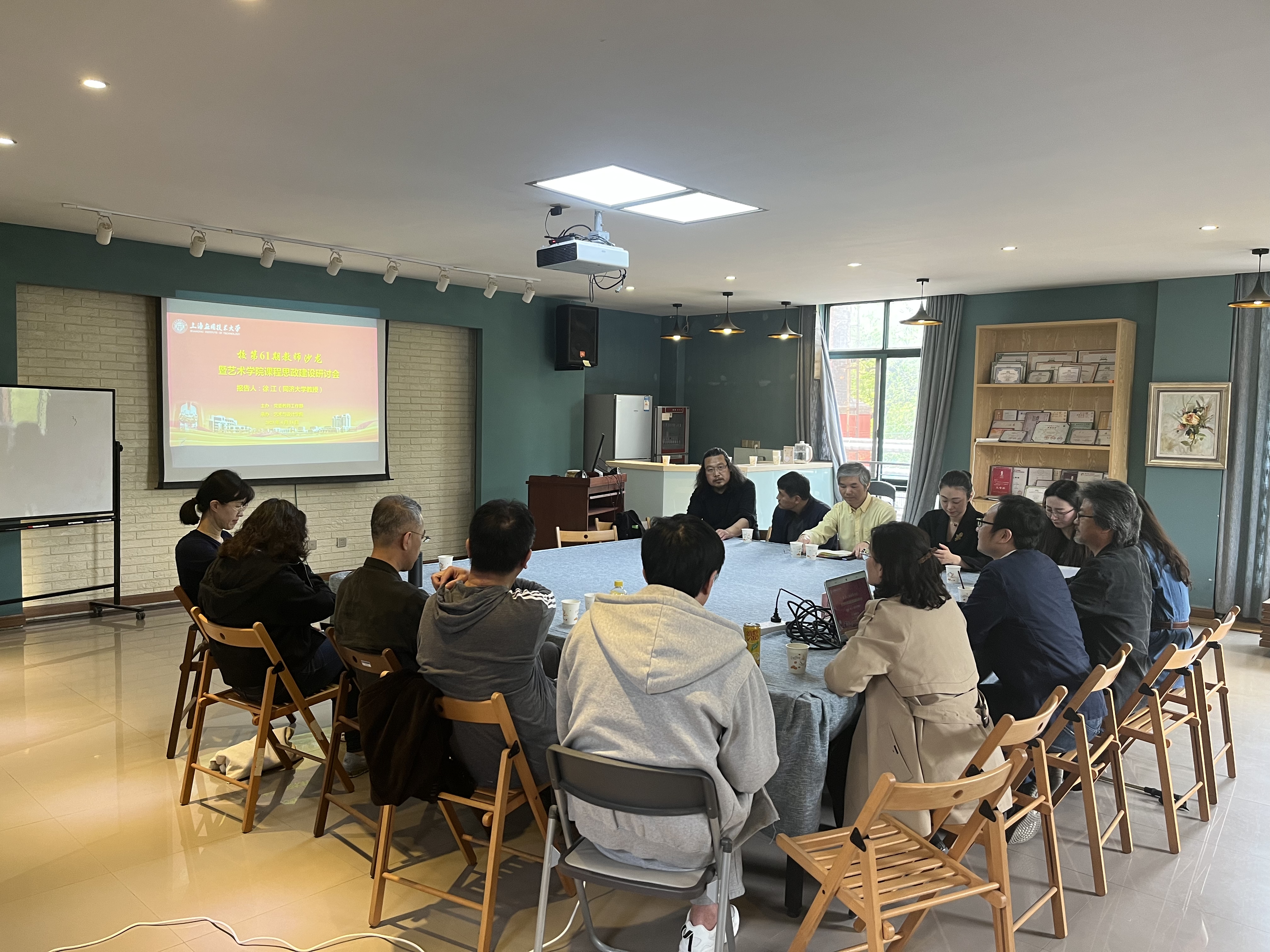 为进一步宣传贯彻党的二十大精神,提高人才培养质量,4月14日,由党委教师工作部主办,艺术与设计学院承办的校第61期教师沙龙暨艺术专业课程思政建设研讨会举行,活动邀请同济大学设计创意学院教授、博士生导师徐江担任主讲人,艺术学院班子成员和教师参加。