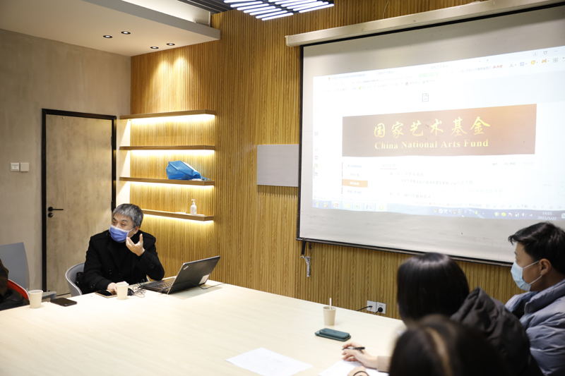 1月22日,作为校品茶论“金”周—社科专场活动之一,艺术学院特邀上海交通大学媒体与传播学院教授、博导,“上海高校智库”文化创新与青年发展研究院首席专家徐剑教授开展了国家社科基金项目(全国艺术科学规划项目)申报辅导,并与学院教师深入交流,艺术学院院长李哲虎、副书记赵慧、副院长史争光及部分教师参与会议。活动由史争光主持。