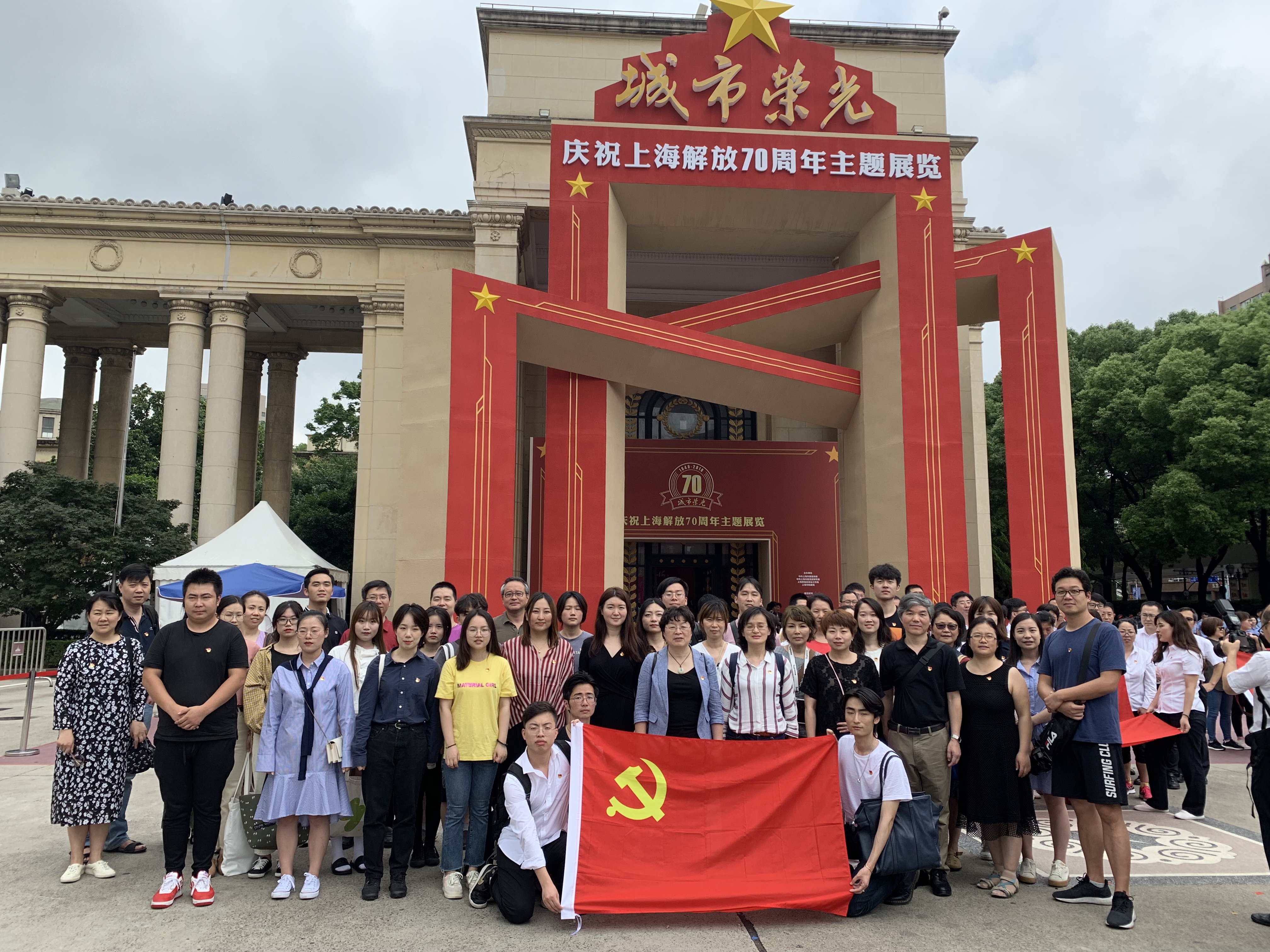 为庆祝上海解放70周年,深入学习贯彻习近平新时代中国特色社会主义思想和党的十九大精神,贯彻落实习近平总书记考察上海重要讲话精神,2019年6月21日,艺术与设计学院党总支组织师生党员四十余名赴上海展览中心参观“城市荣光——庆祝上海解放70周年”主题展览,回顾70年的“上海传奇”。