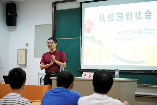 2018年10月9日,上海市杨浦区委统战部副部长、区民族宗教事务办公室主任,杨浦区政协常委卢冰在艺术楼106为近100名艺术学院学子带来了“从校园到社会:当代大学生如何迈好进入社会的第一步”讲座。卢冰的演讲切合当代大学生自身发展需要,现场座无虚席。他以自己的大学生活经历开始本次的演讲,对在座的同学们提出了以下建议:一、面向现实社会,逐步明晰未来发展的定位;二、拥有进入社会必备知识能力素质及心理;三、需要有自知之明,要自信但不自傲;四、要以“内化于形,外化于形”八字为言,清楚认识到学识并不等同于文化。本次讲座提升了艺术学子参与社会竞争软实力,增强了同学们进入社会的信心。卢冰鼓励同学们明确自我定位,拥有乐观向上的积极态度,学会勤读、勤读、勤悟、勤交、勤跑、勤写、勤修,向自己憧憬的未来前进!