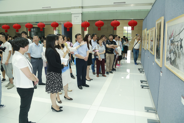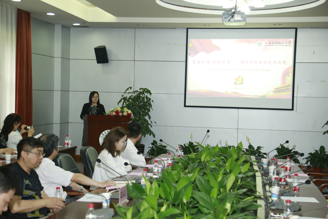 为深入学习习近平新时代中国特色社会主义思想和党的“十九大”精神,贯彻落实习近平总书记在全国和上海高校思想政治工作会议上的讲话精神,扎实推进“两学一做”学习制度常态化制度化及“不忘初心、牢记使命”的部署要求,在学院党总支的指导下,教工二支部于6月22日在徐汇校区图书馆举行了“党建引领 创新发展——课程思政绽放艺术之光”主题党日观摩交流活动暨“丹心创绘中国梦 薪火传承中华情”课程思政艺术作品展。校党委副书记、副校长王瑛,校党委常委、宣传部部长杨明,教师工作部和教务处相关负责人、上海工程技术大学副教授王心旭,上海师范大学副教授饶正杉,部分二级学院党总支书记、专职组织员、党支部书记及学生代表60余人出席了本次活动。主题党日活动由支部书记李岚主持。
