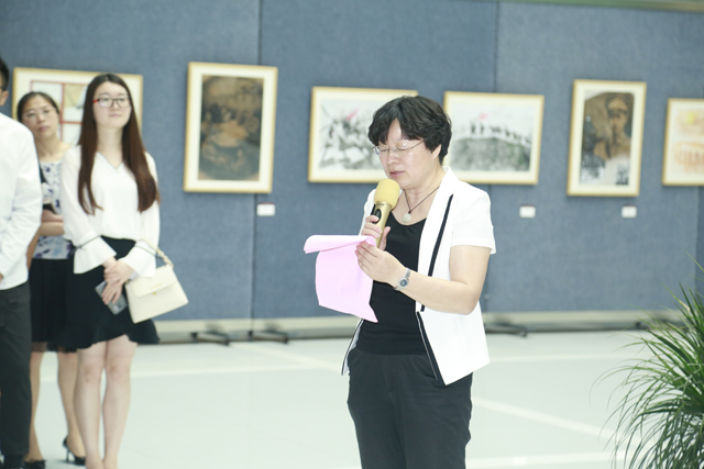 本次主题党日活动共分为两个部分,首先举行的是“丹心创绘中国梦 薪火传承中华情”课程思政艺术作品展开幕仪式。开幕式上,由艺术学院党总支书记孙桂娟致辞,孙书记指出,学院党总支积极响应学校“三位一体”思想政治理论教育课程体系的要求,培育建设了《海报设计》、《素描》、《主题综合设计》三门课程思政课,旨在通过利用好课堂教学这个主渠道,注重把社会主义核心价值观、中华优秀传统文化和社会主义先进文化同教学和学习紧密联系起来,与思政课程同向同行,形成协同效应。随后,李岚从艺术创作和思政教育的角度为参加画展的师生们讲解了学生们曼妙画笔背后的赤诚丹心。
