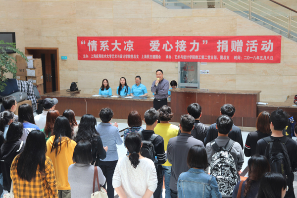 2018年5月8日,“情系大凉,爱心接力”捐赠活动在徐汇校区图书馆一楼顺利举行。本次捐赠活动由上海应用技术大学艺术与设计学院党总支、上海民主建国会主办,艺术学院教工第二党支部、团总支承办。上海民主建国会代表、学院师生代表共计近100人参加了本次捐赠活动。
