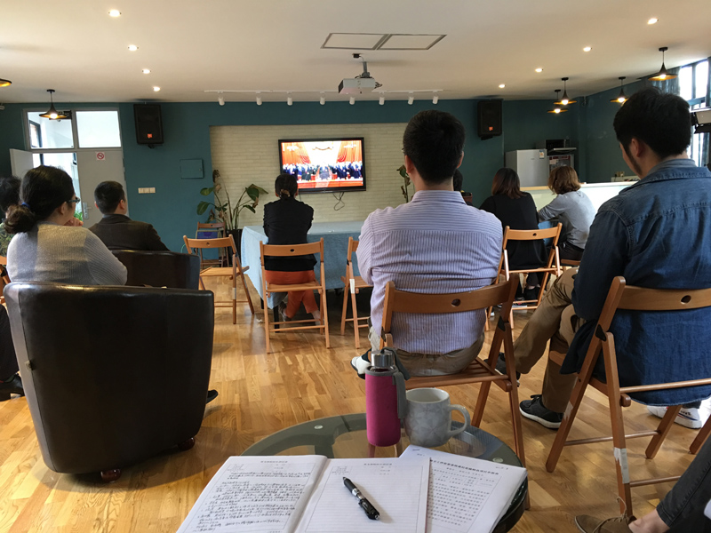 2017年10月18日上午9时整,中国共产党第十九次全国代表大会在北京人民大会堂隆重开幕。艺术与设计学院党总支在徐汇校区艺术楼222室,组织观看了十九大开幕会直播。院党总支书记孙桂娟,总支委员、院领导班子成员、教工党支部书记、学生党支部书记、教工支部全体党员、辅导员还有部分教师等30余人收看了开幕会盛况。