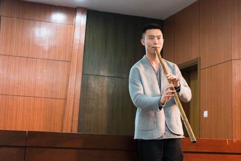 讲座中,李瑞老师现场用竹笛和洞箫演奏《高山流水》、《梅花三弄》、《二泉映月》、《秋湖月夜》等传统国乐,探讨什么是音乐、什么是国乐、什么是山水、什么是国乐中的山水等话题,与广大青年学生分享他对国乐中的文人情怀和山水精神的领悟。同时,他还与同学们畅谈自己的音乐创作道路。讲座中,李老师还与同学们亲切互动,听音乐、猜乐器、回答同学们的问题,同学们竞相举手气氛空前热烈。讲座最后,李瑞老师阐述了自己的音乐理念,以山水雅乐思想引发同学们深思,表现了音乐艺术的独特魅力。